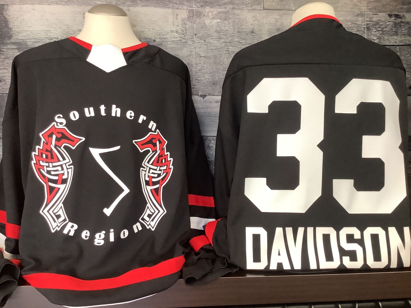 Jatt Sports is London's source for custom team hockey jerseys. For local London hockey teams, Whether you are playing on a men's beer hockey league, an intramural team at Western or Fanshawe, or any other youth hockey team in London, Ontario, Jatt Sports has you covered. Our easy to use online design studio lets you customize many different custom hockey jersey styles and order them online. We do all of our own custom hockey jersey customization at our location at 857 Consortium Court in London, Ontario. Come and check out our many different styles of hockey jerseys in our showroom and order your team set of hockey jerseys today.